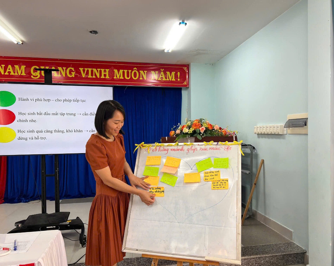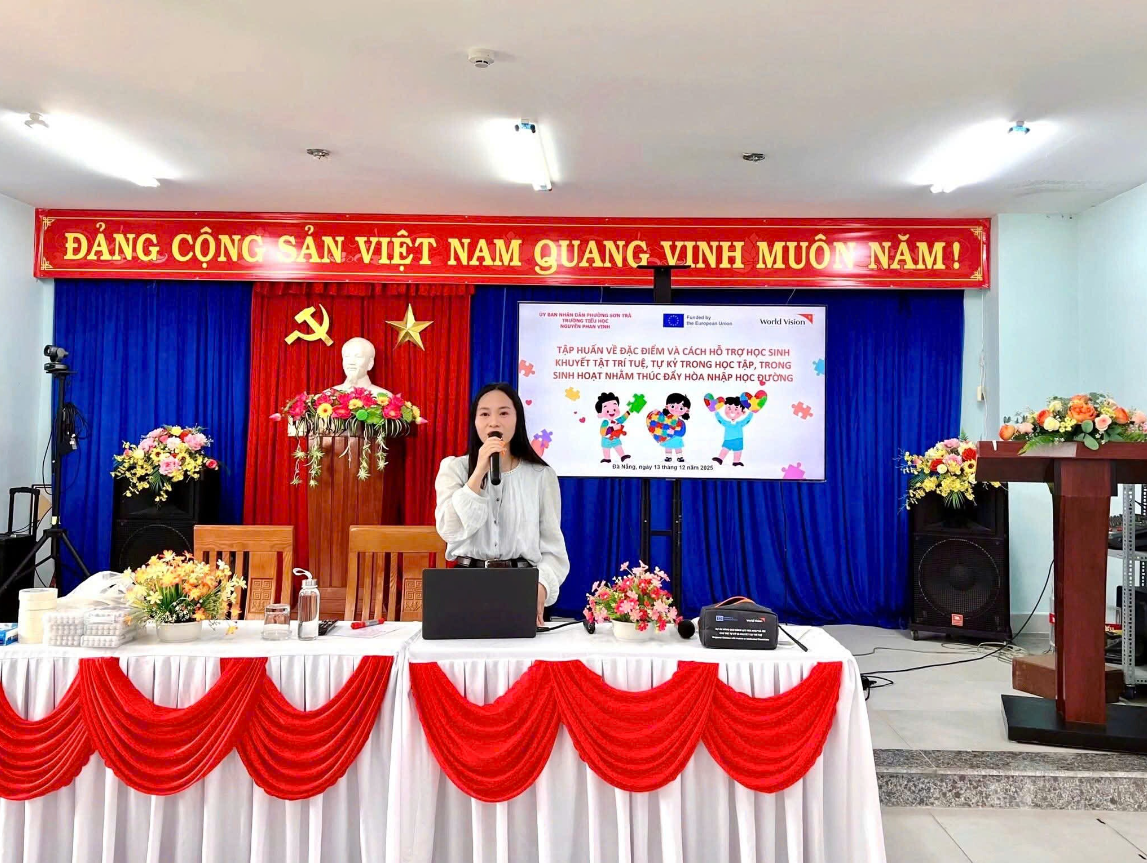 Nhằm nâng cao năng lực chuyên môn và kỹ năng sư phạm cho đội ngũ giáo viên trong công tác giáo dục hòa nhập, Trường Tiểu học Nguyễn Phan Vinh đã tổ chức buổi tập huấn với chủ đề “Đặc điểm và cách hỗ trợ học sinh khuyết tật trí tuệ, rối loạn phổ tự kỷ trong thực hiện giáo dục hòa nhập”. 📚 Tại buổi tập huấn, các thầy cô được tìm hiểu về đặc điểm tâm lý, nhận thức, hành vi, những khó khăn và nhu cầu đặc thù của học sinh khuyết tật trí tuệ và học sinh rối loạn phổ tự kỷ trong môi trường lớp học hòa nhập. Nội dung tập huấn gắn liền với thực tiễn giảng dạy, giúp giáo viên có cái nhìn đúng đắn và sâu sắc hơn trong quá trình hỗ trợ học sinh. 🧩 Bên cạnh đó, chương trình tập trung trang bị các kỹ năng hỗ trợ thiết thực, dễ vận dụng như: giao tiếp hỗ trợ (nói chậm – rõ – câu ngắn), điều chỉnh nhiệm vụ học tập phù hợp, kịp thời động viên – khích lệ và hỗ trợ hành vi tích cực cho học sinh. 💙 Buổi tập huấn là hoạt động ý nghĩa, góp phần nâng cao chất lượng giáo dục hòa nhập tại Trường Tiểu học Nguyễn Phan Vinh, hướng tới xây dựng môi trường học tập an toàn – thân thiện, nơi mỗi học sinh đều được tôn trọng, yêu thương và phát triển theo khả năng của mình. ❤️ ❤️ Xin chân thành cảm tổ chức Dự án Tầm nhìn Thế giới đã luôn đồng hành cùng nhà trường trong quá trình hỗ trợ học sinh học hoà nhập .