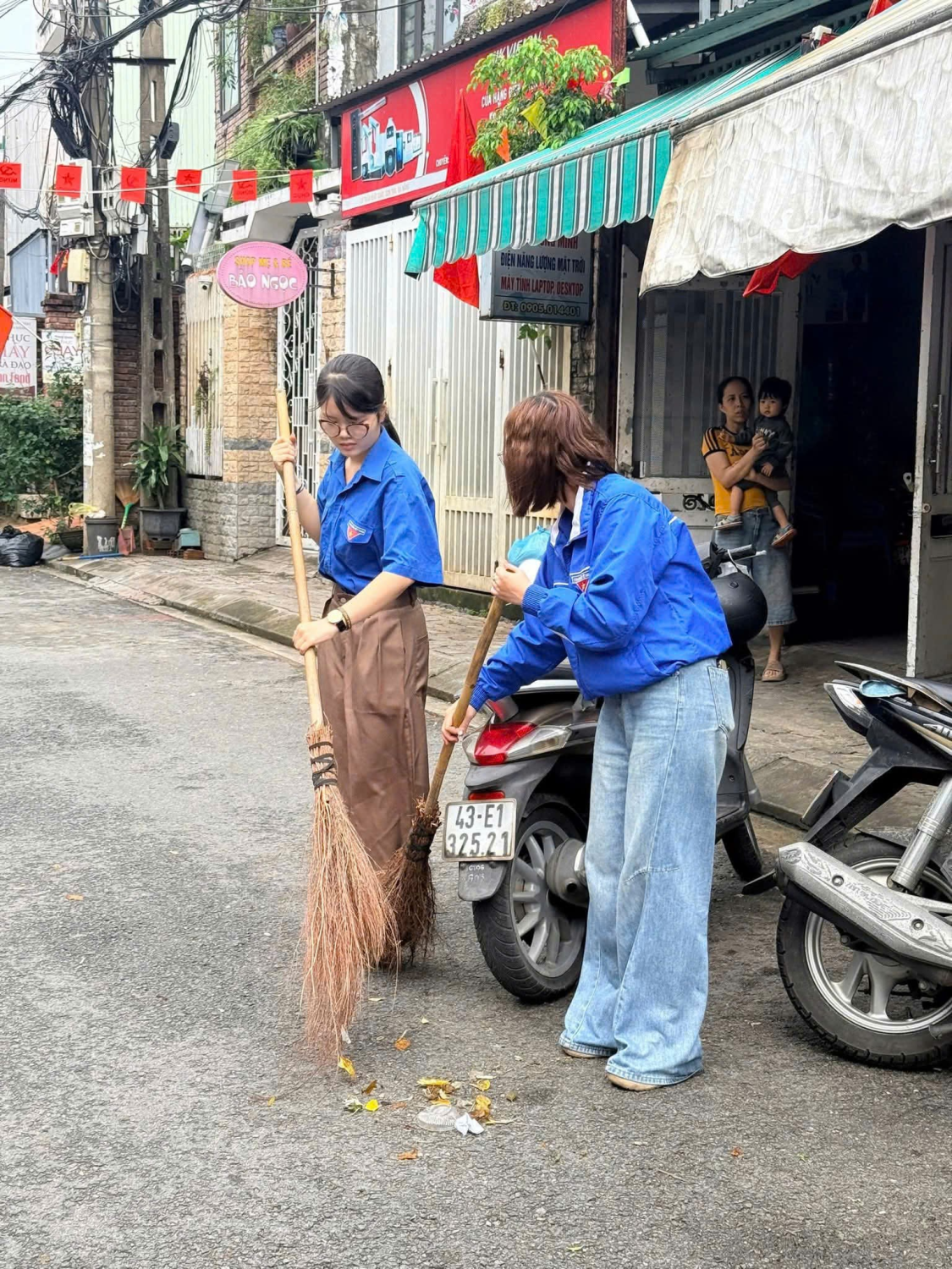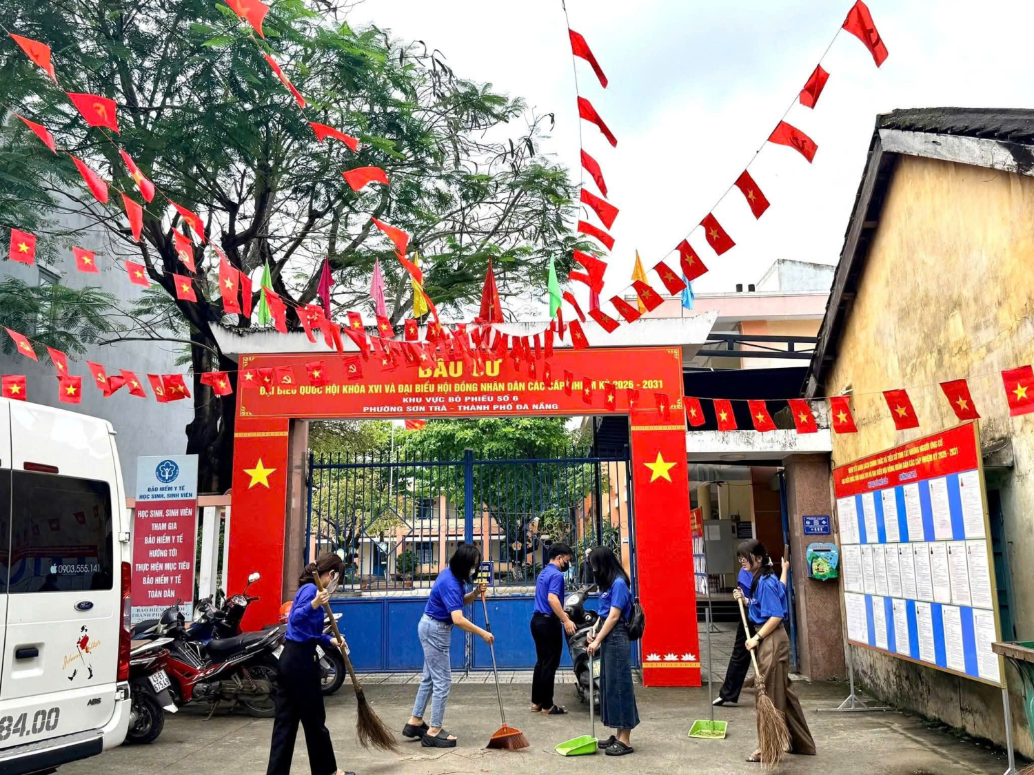 🔹 Với tinh thần xung kích và trách nhiệm của tuổi trẻ, các đoàn viên thanh niên đã tích cực tham gia bóc gỡ các tờ rơi, biển quảng cáo dán trên cột điện, tường rào; đồng thời quét dọn, thu gom rác thải, góp phần trả lại diện mạo sạch đẹp ở địa điểm bầu cử và các tuyến đường quanh các địa điểm bầu cử.