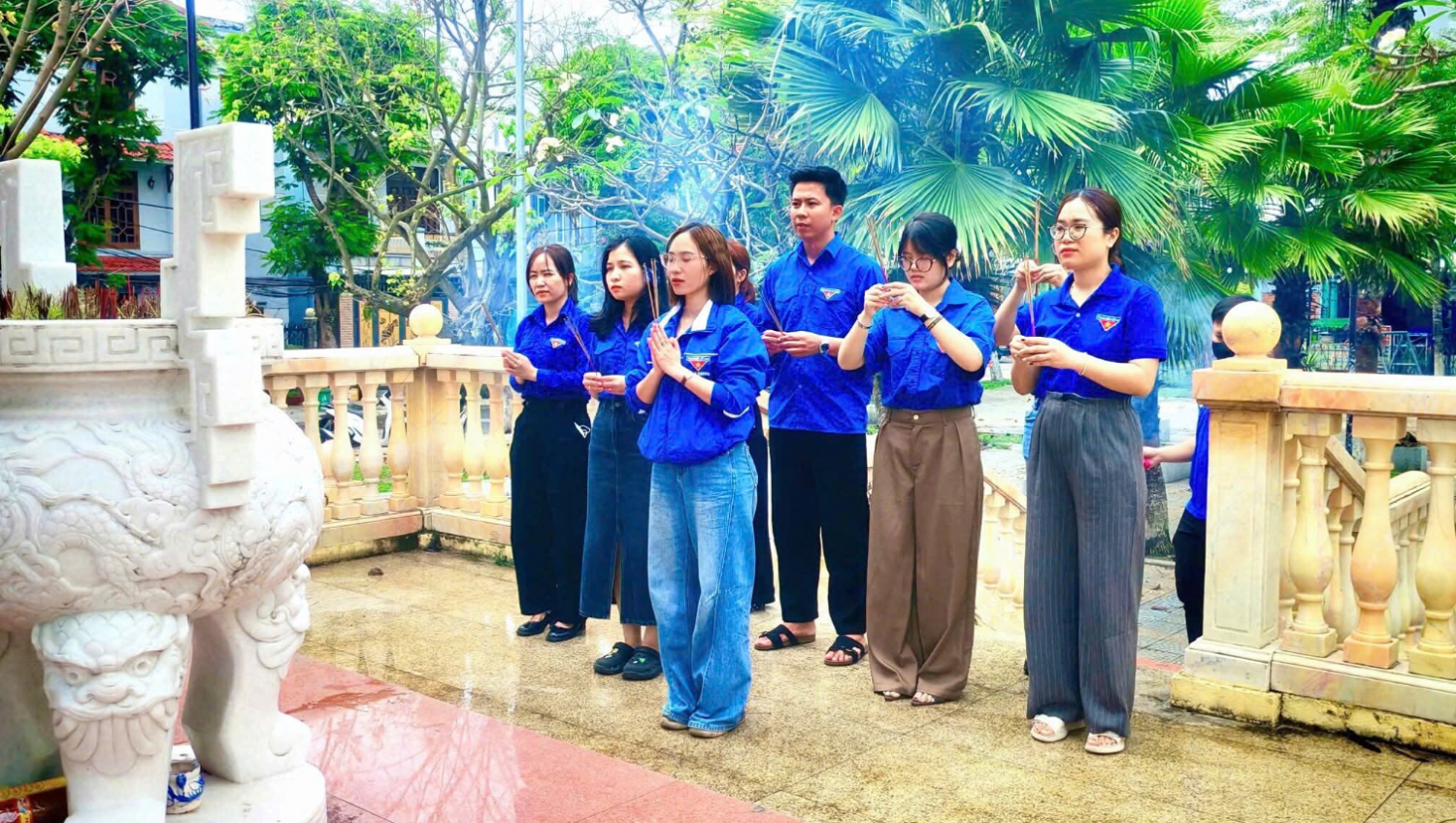 🌿 Tại Đài tưởng niệm liệt sĩ, các đoàn viên đã thành kính dâng hương, dành phút mặc niệm tưởng nhớ và tri ân công lao to lớn của các anh hùng đã ngã xuống vì độc lập, tự do của Tổ quốc. Không khí trang nghiêm, xúc động đã góp phần hun đúc thêm niềm tự hào dân tộc và ý thức trách nhiệm của thế hệ trẻ hôm nay.
