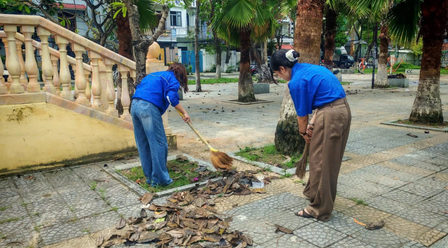 💙 Sau lễ dâng hương, Chi đoàn đã tổ chức hoạt động vệ sinh khuôn viên Đài tưởng niệm. Những hành động thiết thực như quét dọn, thu gom rác thải, làm sạch cảnh quan không chỉ góp phần giữ gìn sự tôn nghiêm của khu di tích mà còn thể hiện đạo lý “Uống nước nhớ nguồn”, lòng biết ơn sâu sắc đối với các thế hệ cha anh.
