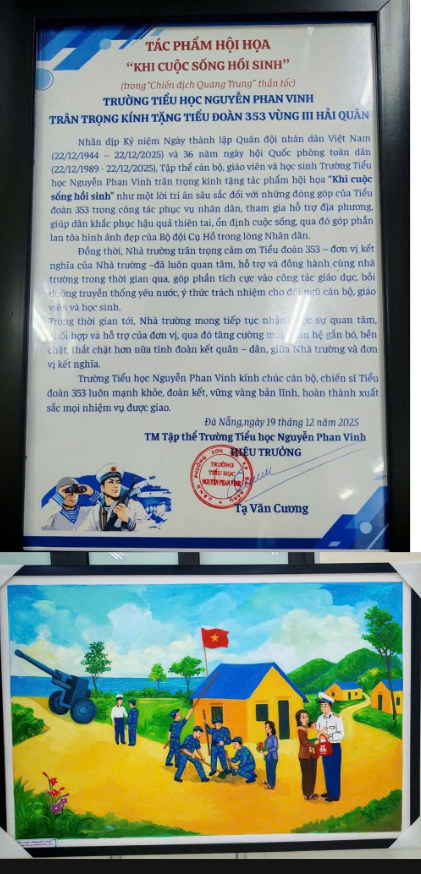 Hướng tới kỷ niệm 81 năm Ngày thành lập Quân đội Nhân dân Việt Nam (22/12/1944 – 22/12/2025) và 36 năm Ngày hội Quốc phòng toàn dân (22/12/1989 – 22/12/2025), Trường Tiểu học Nguyễn Phan Vinh đã tổ chức các hoạt động thăm hỏi, động viên và chúc mừng các đơn vị kết nghĩa, các đơn vị quân đội đang đóng quân trên địa bàn phường.