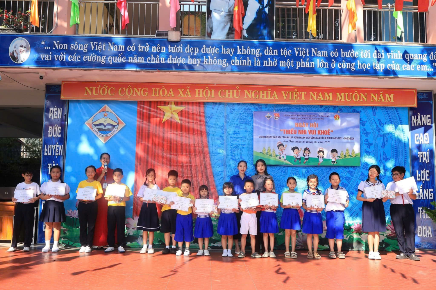 úa hát tập thể, các tiết mục được chuẩn bị công phu, đồng đều và đầy nhiệt huyết, thể hiện tinh thần đoàn kết và tuổi trẻ hồn nhiên của các em học sinh. 🏆 Bên cạnh đó, nhà trường đã trao giải các nội dung thể thao cấp trường, ghi nhận sự nỗ lực, tinh thần thi đấu tích cực và ý chí rèn luyện của các em.