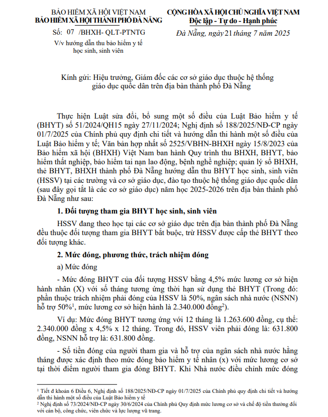 Số: 07/BHXH- QLT-PTNTG V/v hướng dẫn thu bảo hiểm y tế học sinh, sinh viên.