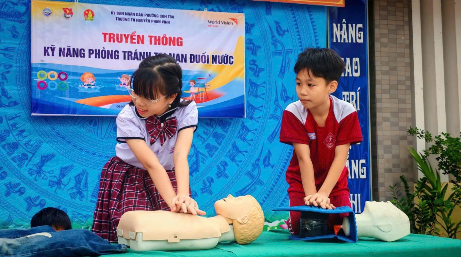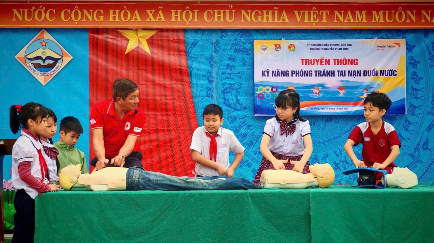 Nhằm trang bị cho học sinh những kiến thức, kỹ năng cần thiết để tự bảo vệ bản thân và phòng tránh tai nạn thương tích, sáng ngày 29/12/2025; Trường Tiểu học Nguyễn Phan Vinh đã tổ chức buổi truyền thông với chủ đề “Phòng tránh tai nạn đuối nước và kỹ năng sơ cấp cứu ban đầu” cho toàn thể học sinh trong nhà trường. Chương trình do Tổ chức World Vision tài trợ. Tham gia báo cáo và trực tiếp truyền đạt nội dung tại buổi truyền thông là ông Nguyễn Văn Lưu – Chuyên gia Trung tâm Huấn luyện Sơ cấp cứu, Hội Chữ thập đỏ thành phố Đà Nẵng. Với phương pháp truyền đạt gần gũi, sinh động, báo cáo viên đã giúp các em học sinh tiếp cận kiến thức một cách dễ hiểu và hiệu quả. Tại chương trình, học sinh được tuyên truyền những nội dung quan trọng về nguyên nhân, hậu quả và các biện pháp phòng tránh tai nạn đuối nước, đặc biệt là kỹ năng an toàn khi vui chơi gần ao hồ, sông suối, khu vực nguy hiểm. Đồng thời, các em còn được hướng dẫn cách xử lý khi gặp người bị đuối nước, nhấn mạnh nguyên tắc không tự ý cứu người khi chưa có kỹ năng và cần nhanh chóng tìm sự hỗ trợ từ người lớn. Bên cạnh đó, chương trình còn trang bị cho học sinh kỹ năng sơ cấp cứu ban đầu như: xử lý khi bị chảy máu cam, cách xử lý tình huống hóc dị vật, thông qua các ví dụ minh họa trực quan và thực hành mẫu. Học sinh hào hứng tham gia trả lời câu hỏi, tương tác với báo cáo viên, tạo nên không khí học tập sôi nổi. Buổi truyền thông đã góp phần nâng cao nhận thức, kỹ năng phòng tránh tai nạn thương tích cho học sinh, giúp các em tự tin hơn trong việc bảo vệ bản thân, đồng thời thể hiện sự quan tâm của nhà trường và các đơn vị đồng hành trong công tác chăm sóc, bảo vệ trẻ em.